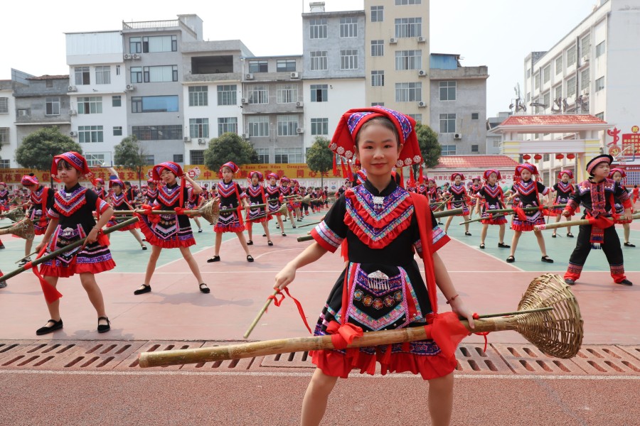 近日,廣西河池市大化瑤族自治縣第一小學舉辦了“竹鼓舞”展演活動。600多名師生身著民族服飾,手持傳統竹鼓,在激昂的鼓點中起舞,以非遺文化展演的形式弘揚民族精神,增強文化自信。