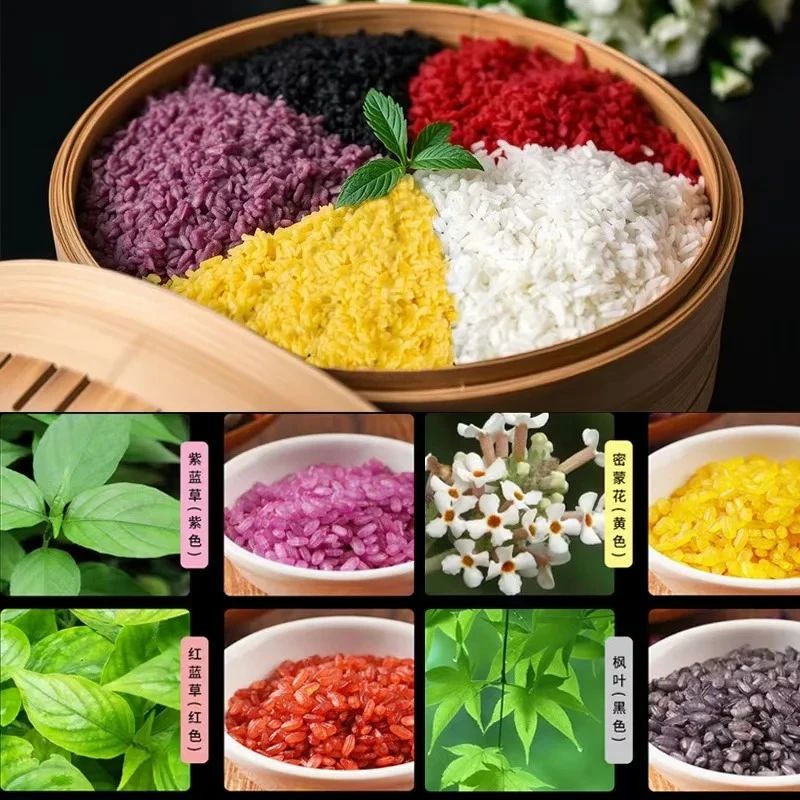 “農歷三月三恰好是染色植物生長最好的時節,我們在這個時間做五色糯米飯是代代相傳的一種習俗,就像中秋吃月餅、春節吃年糕一樣?!迸思t華說。