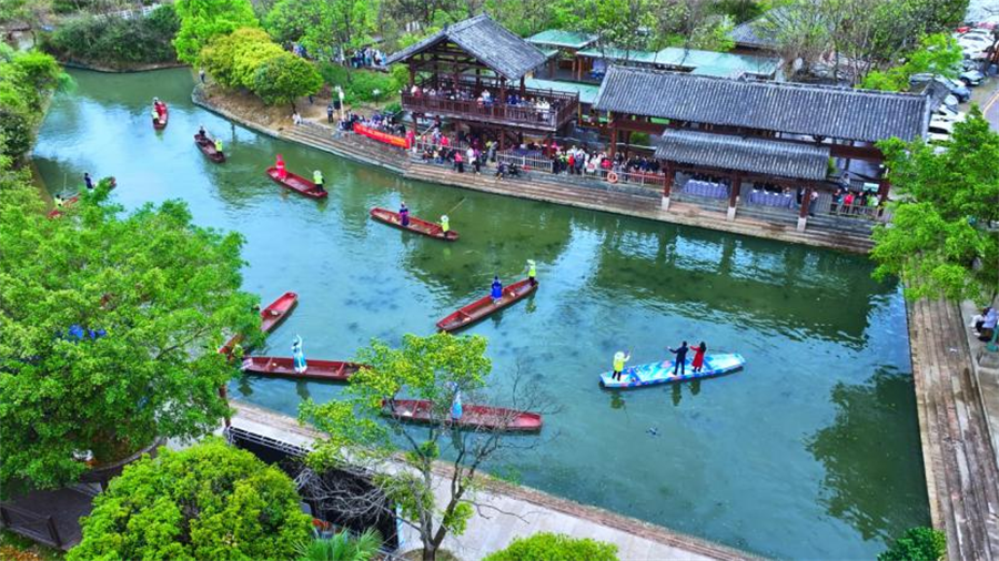 3月29日,“桂林之花·臨桂甄香”臨桂區2025年鑄牢中華民族共同體意識?廣西三月三民族服飾秀暨會仙濕地創意設計展,在臨桂區會仙濕地公園精彩上演,活動以山水為舞臺,以鐵船為載體,巧妙地將民族文化、生態資源與鄉村振興有機融合。