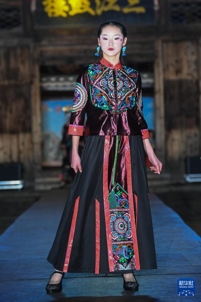 “廣西三月三·八桂嘉年華”活動期間,廣西柳州市三江侗族自治縣侗族群眾穿著民族服飾依次走上T臺,展現侗繡獨特民族風情及時尚變化,慶祝傳統佳節。