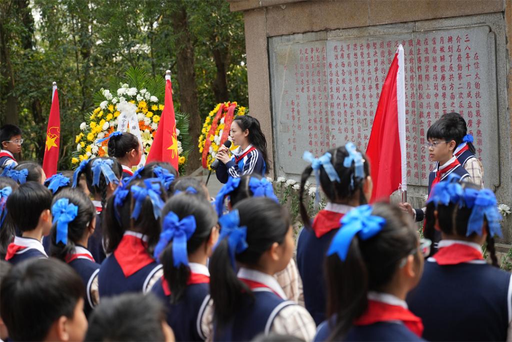 活動尾聲,梁秋夢老師動情總結:“今天的和平是先烈用生命換來的,而你們的筆尖、你們的成長,就是對英靈最好的告慰!希望隊員們將今天的感動化作行動,用勤奮學習告慰先烈英靈?!?/p>