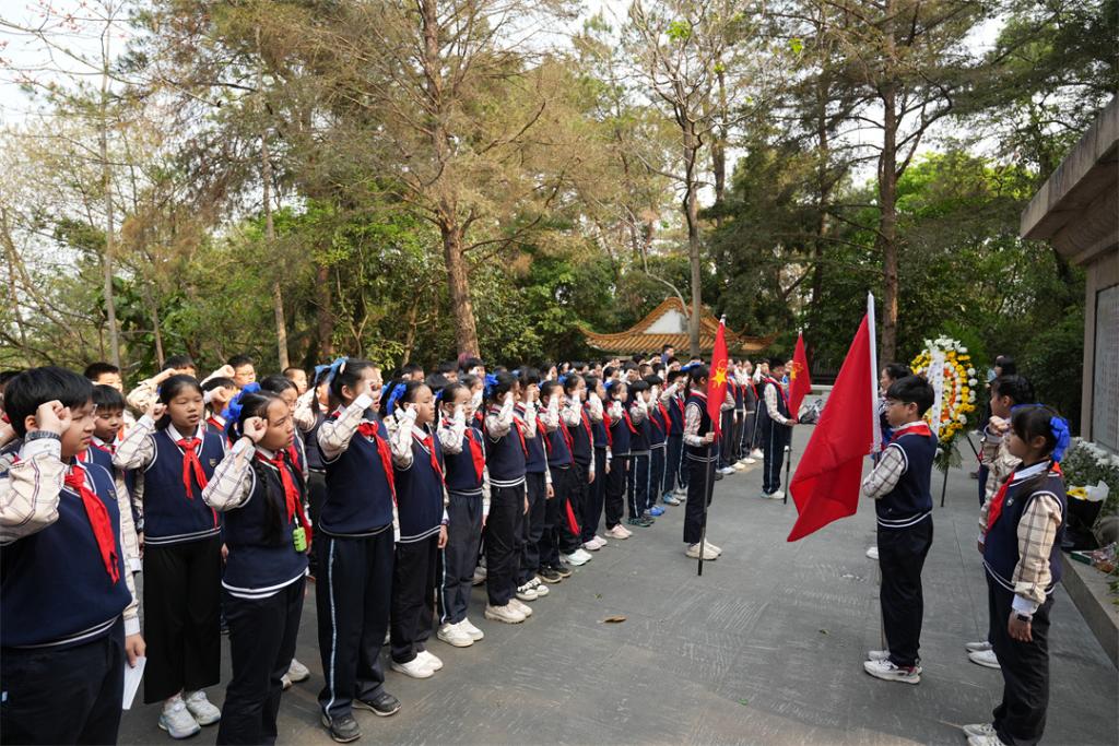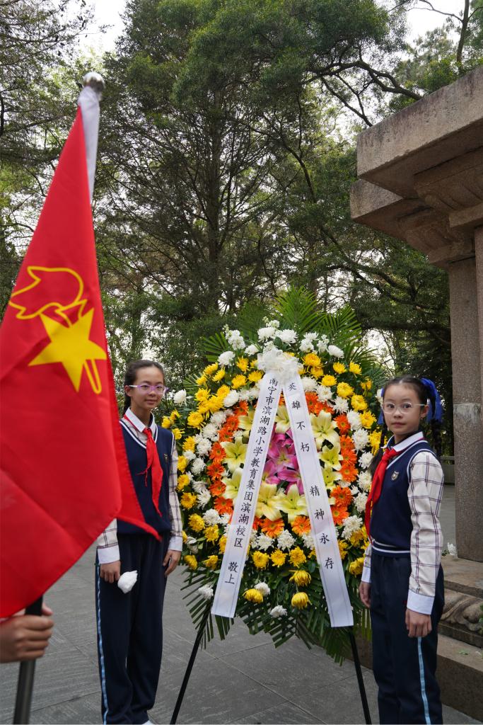 春風寄哀思,青松伴忠魂。4月3日上午,南寧市濱湖路小學教育集團濱湖校區開展清明節祭掃英烈主題活動,五(1)、五(2)中隊的少先隊員們,在老師的帶領下,身著整齊的校服,戴著鮮艷的紅領巾,前往青秀山廣西學生軍抗日烈士紀念碑,以一場莊嚴肅穆的祭掃活動,緬懷革命先烈,厚植愛國情懷。