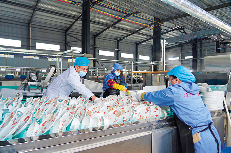 “現在每天處理套餐碗12萬套、日清洗不銹鋼盤120萬只,目前合作的學校、餐飲店超過400家。目前有工人50多名,2025年打算再招工80人?!痹摴矩撠熑松蛭姆颊f。