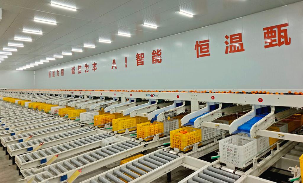 “這條沃柑全自動分選線設備,精準識別每個沃柑的大小、色澤及瑕疵,將果品精準分級,每天可對50萬斤沃柑進行清洗分選?!睆V西旭興農業有限公司總經理楊燕文介紹,“經過分揀可以使沃柑的效益更大化,標準化統一包裝后,每公斤價格能溢價一元以上?!?/p>