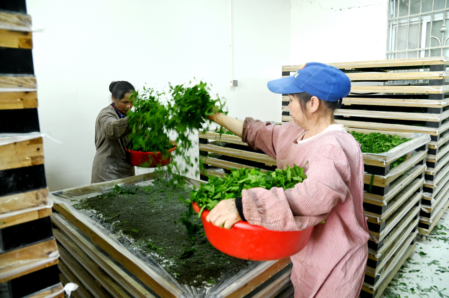 工人在小蠶共育室給蠶寶寶喂桑葉。白璐 攝