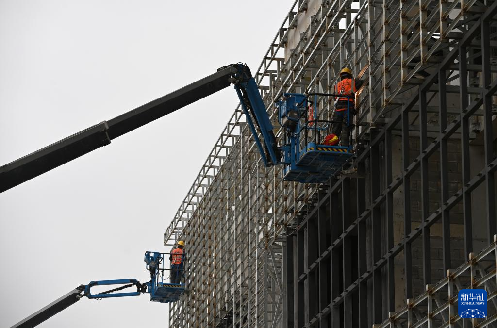 4月17日,在南憑高鐵崇憑段憑祥東站,中鐵四局工人在裝修施工中(無人機照片)。