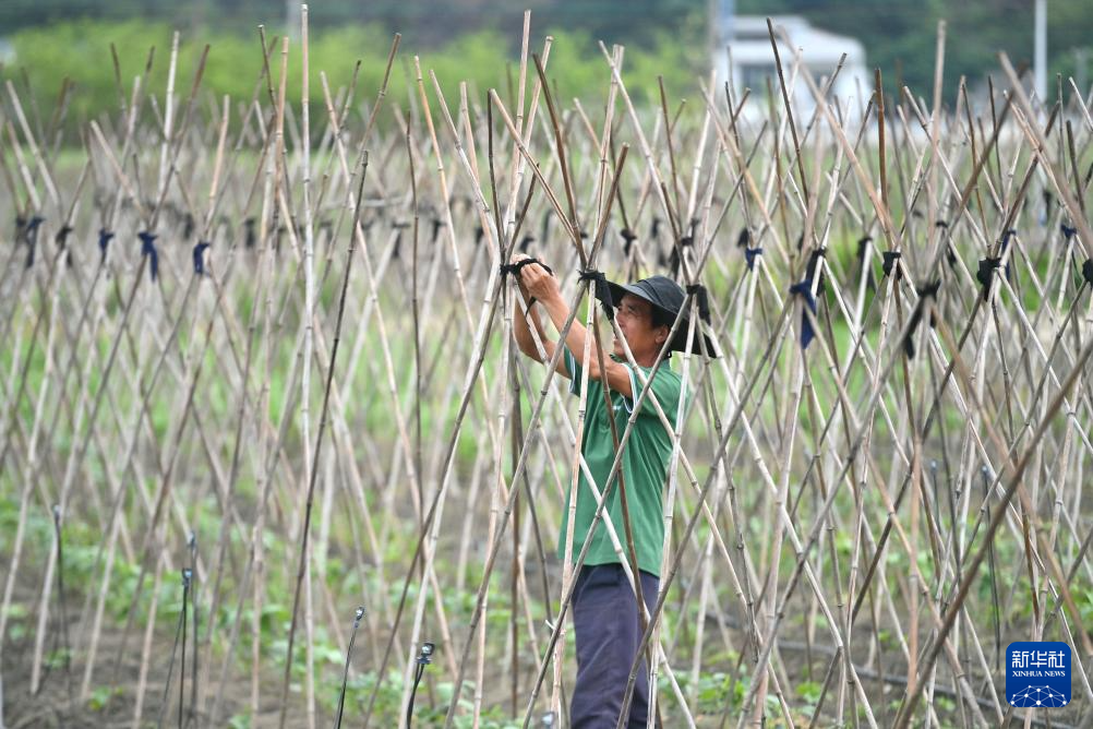 4月26日,在廣西柳州市柳江區三都鎮覺山村的蔬菜種植基地,村民在田間勞作。