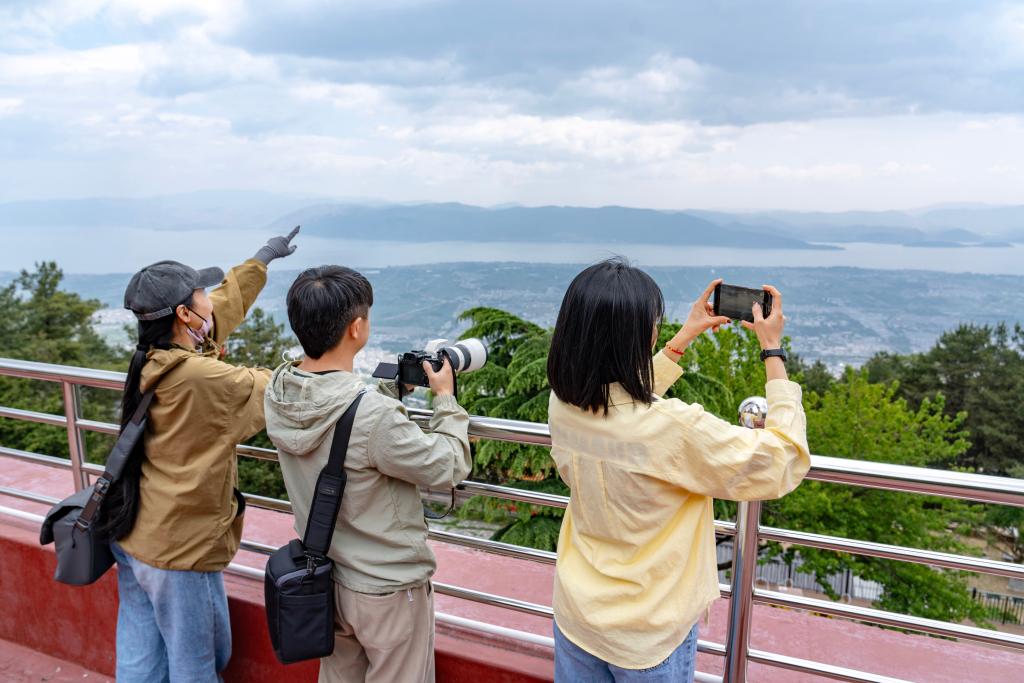 2025年4月23日,游客在大理蒼山玉帶路欣賞風光。新華社發(羅鑄攝)
