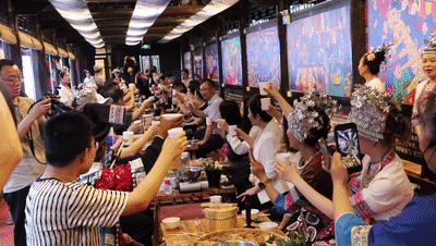 廣西旅游發展集團有限公司程陽八寨景區辦公室主任黃能盛表示,今年一季度,景區的旅游接待量大約為23萬人次,整個景區的旅游綜合收入約為2800萬元,同比增長約15%—20%?!按逭锩嬉恍┘w經濟經營的百家宴服務項目,平時來說可能每一餐會有兩三百人用餐,但是一到節假日就是每一天每一餐都有六七百人用餐,完全是供不應求的?!秉S能盛說。