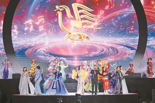 深度融合“經典”與“時尚”元素,是本次活動最耀眼的亮點?;顒拥娜齻€篇章,通過“喚醒—喚新—喚彩”三重敘事,將民歌演繹與國潮大秀、非遺技藝、現代舞、虛擬主播等多元形式巧妙結合,重新定義“民歌”內涵:第一篇章“大地飛歌 經典流傳”中,《山歌好比春江水》《阿里山的姑娘》等經典旋律一響起,便勾起人們的美好回憶;第二篇章“民歌潮音 山水秀場”里,壯語版《藤纏樹》等節目將經典民歌與虛擬主播時尚元素創新融合,新編歌曲《我在南寧等你來》以年輕人喜愛的方式生動展現南寧風貌;第三篇章“民歌無界 世界共享”中,中外歌手同臺獻藝,外語歌曲與廣西民歌相互輝映,盡顯民歌跨越國界的獨特魅力?!罢麍鲅莩龈枨男煞浅g快活潑,既有民族特點,又融入許多流行時尚元素,非常符合南寧這座包容城市的形象?!备枋謼钗饕糇诱f。