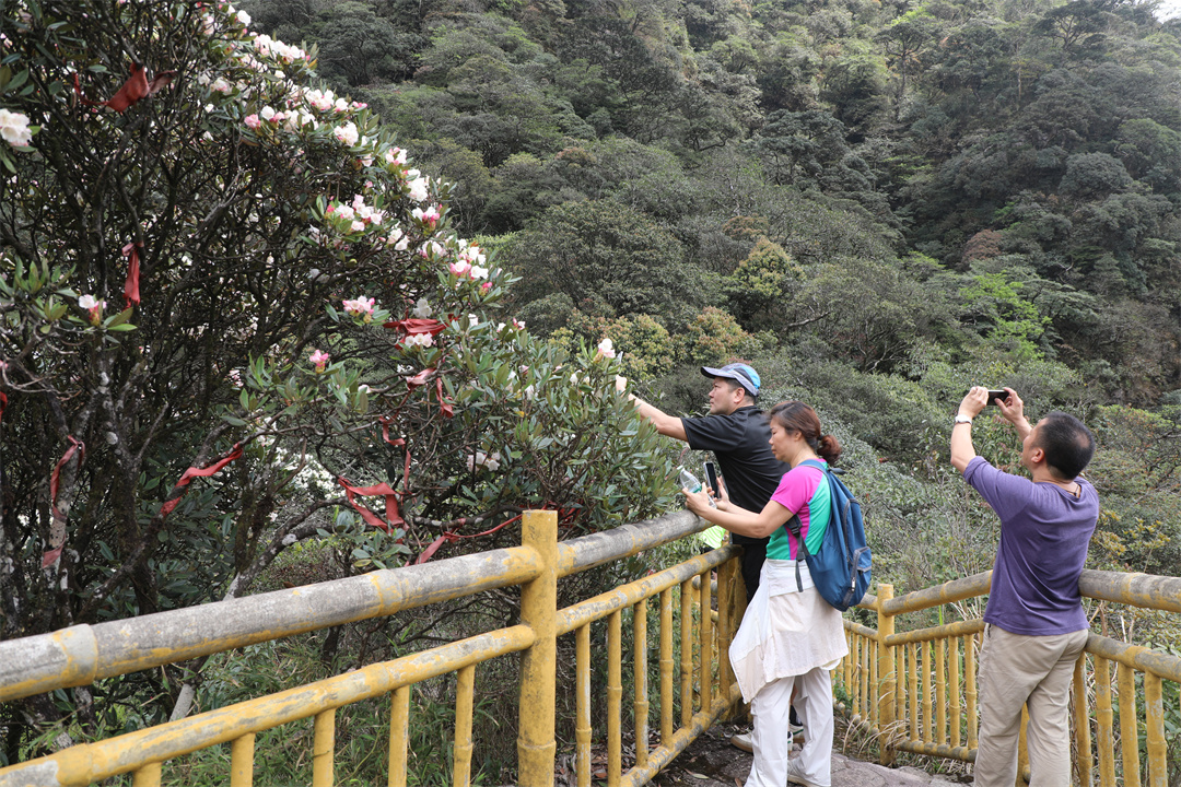 “我們專程從貴港自駕到圣堂山賞花,這里的林海、云海、杜鵑花都很美,名不虛傳?!辟F港游客楊女士說。