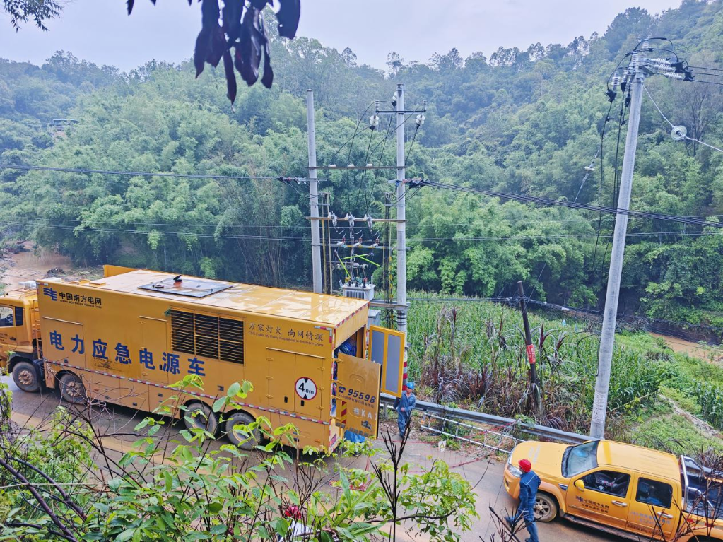 5月17日,南方電網廣西玉林北流供電局調配中壓發電車給清灣鎮六到村應急供電。葉達富 攝