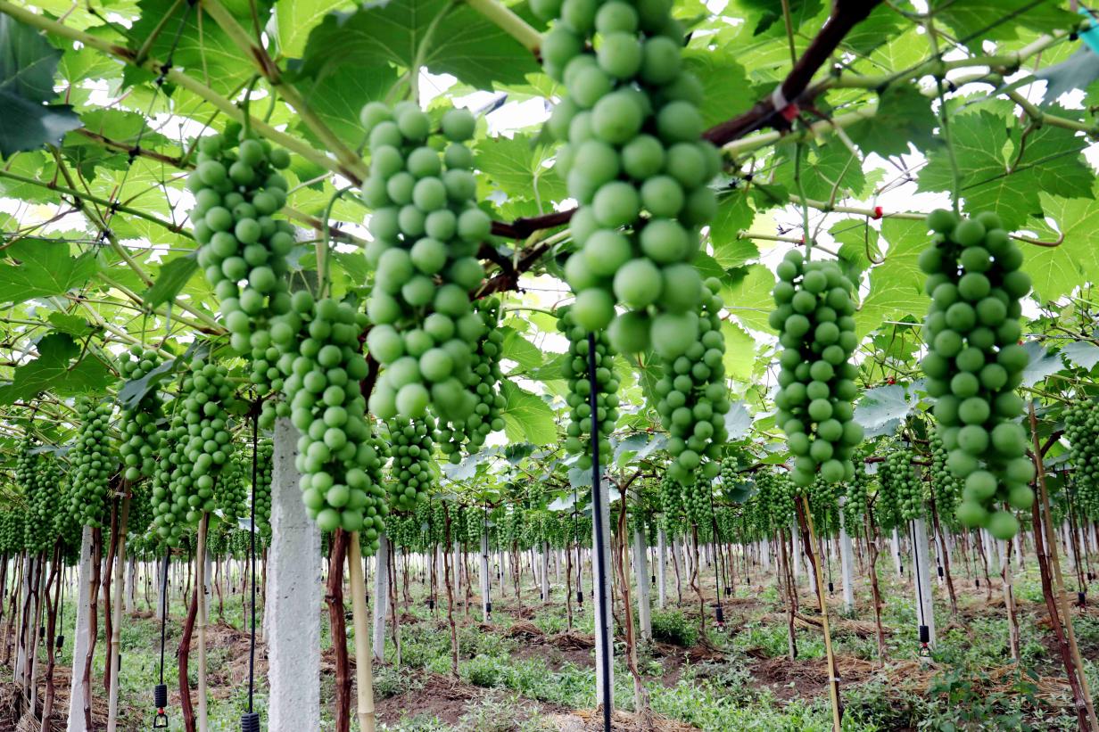 近年來,平桂區踐行綠色生態發展理念,采取“公司+合作社+基地+農戶”模式,建成多個特色葡萄產業基地,通過科學施肥、控產等專業化管護,持續提升葡萄品質,助力農業增效、農民增收。截至目前,平桂區葡萄種植面積1700畝,其中投產面積1650畝,有10余個品種,葡萄將在8月份成熟上市。