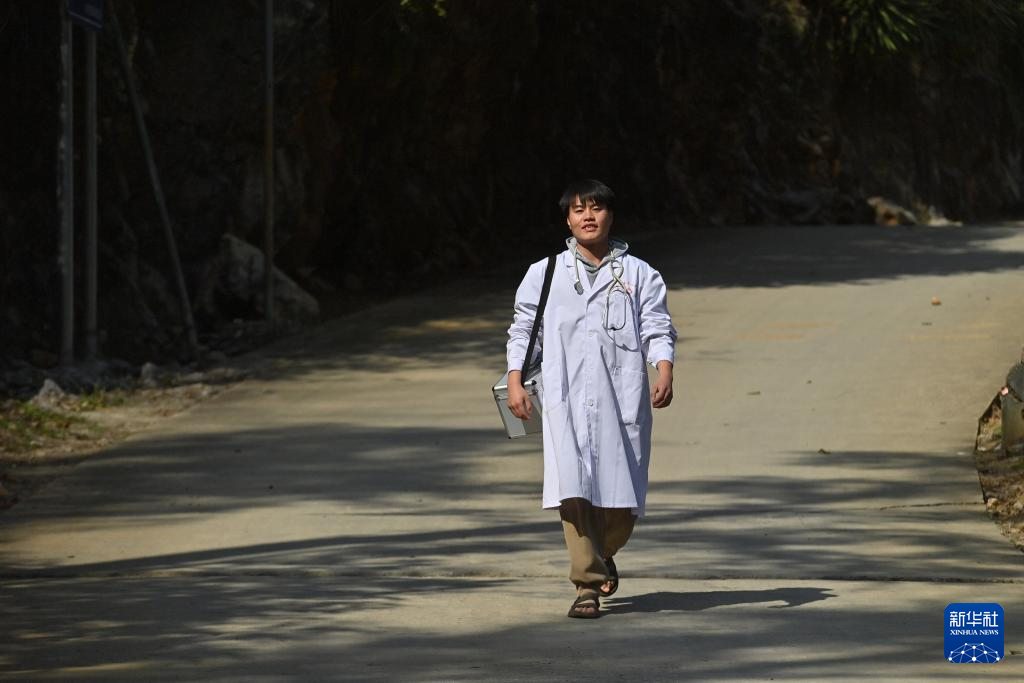 在廣西大化瑤族自治縣板升鄉弄雷村,村醫蒙富松準備進村入戶給村民看?。?024年3月6日攝)。