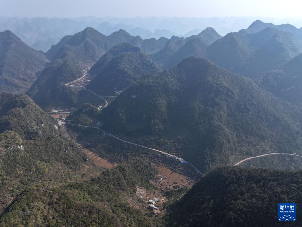這是廣西大化瑤族自治縣板升鄉弄雷村哈寶屯(無人機照片,2025年1月20日攝)。十年前,哈寶屯已經從不通公路的山弄里,整體搬遷至公路邊。