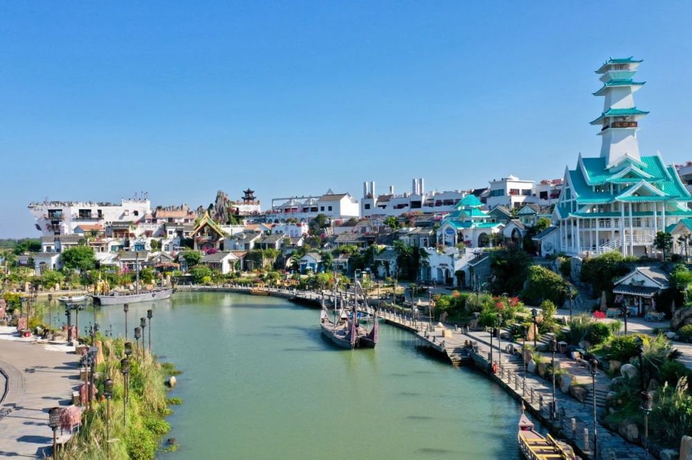 景區內,融合漢代建筑風格與異域元素的古堡建筑錯落有致。古堡內復刻漢代市井街巷,設有商鋪、碼頭、驛站等場景。作為全景交互式演藝《千年始發港》的主舞臺,古堡區域每晚上演商隊出港、異域歌舞、漢風婚禮等劇情。當身穿古代服飾的商家、漁民、水手,以及裝扮奇異的各國商人從你身旁走過,仿佛打開時光之門。