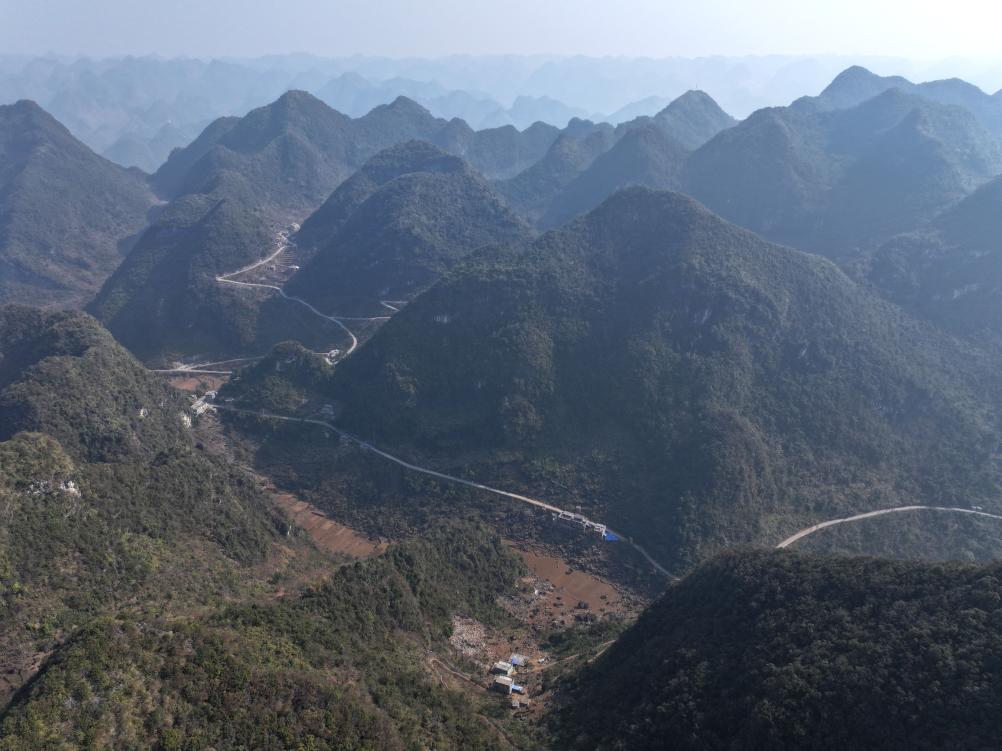 這是廣西大化瑤族自治縣板升鄉弄雷村哈寶屯(2025年1月20日攝)。十年前,哈寶屯已經從不通公路的山弄里,整體搬遷至公路邊。