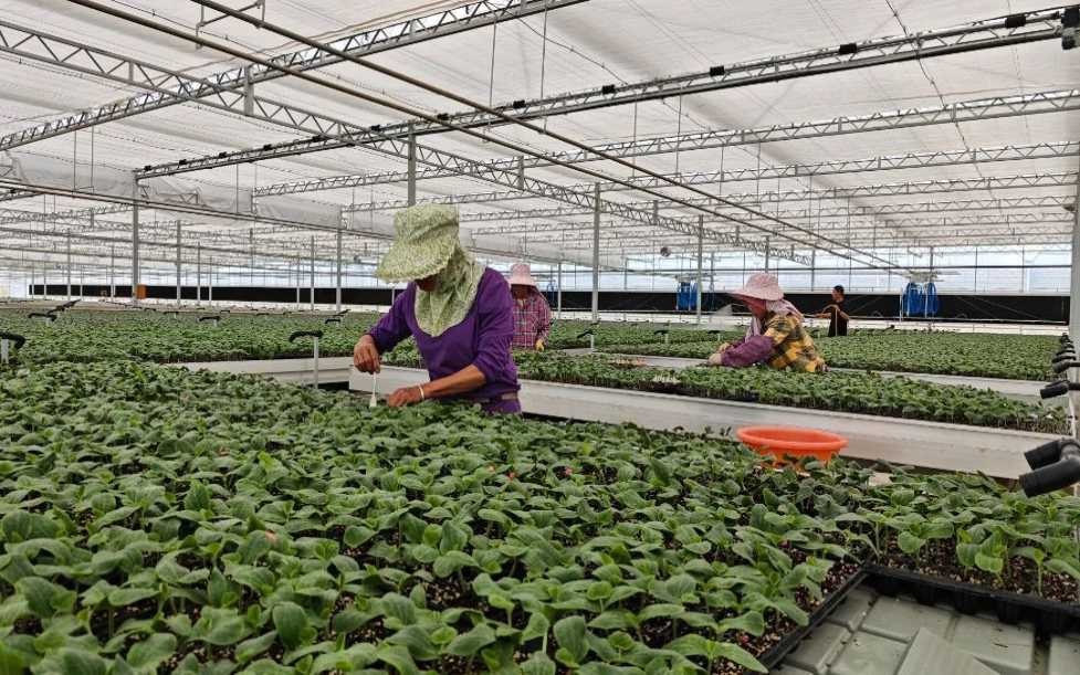 工人在育苗大棚里作業