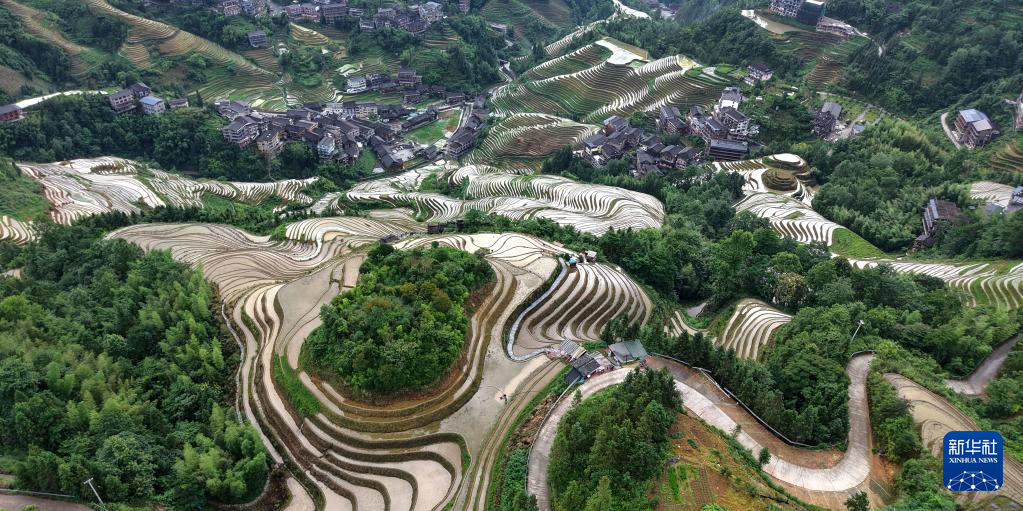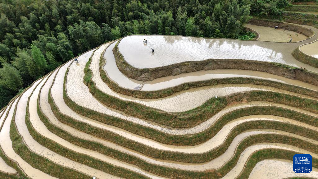 連日來,廣西桂林市龍勝各族自治縣龍脊梯田轄區內的各村寨進入夏種農忙時節,村民忙著耙田、插秧,梯田上一派忙碌景象。