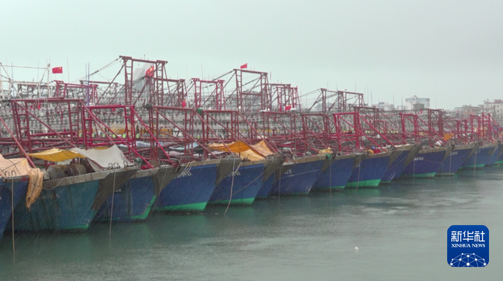 在僑港鎮電建漁港,各類漁船整齊停泊。新華社發(梁舜 攝)