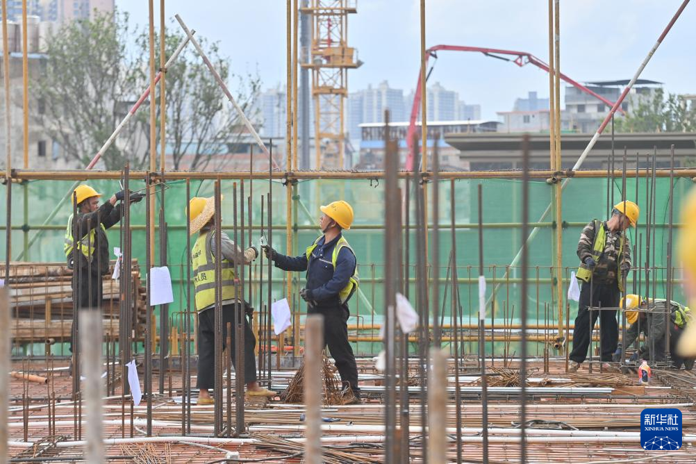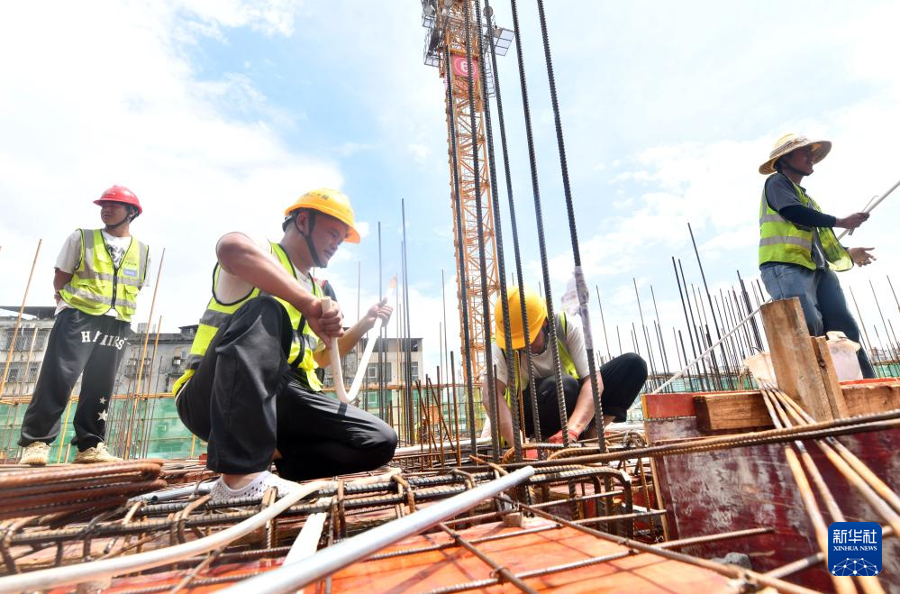 6月16日,中鐵二十局工人在南寧市雞村城中村改造項目建設現場施工作業。
