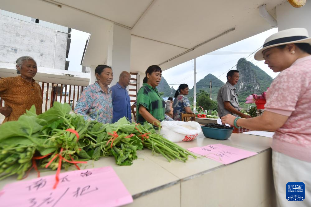 6月17日,在柳州市柳江區進德鎮樂山村長安屯,村民在小集市銷售農家菜。