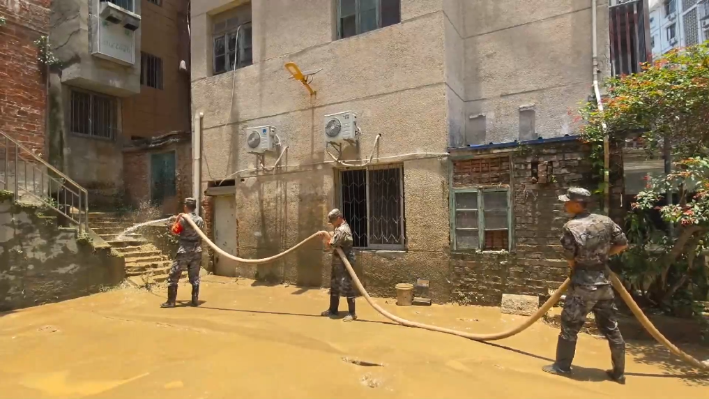 6月26日上午,街道、消防、武警等多方力量迅速行動,調配機械設備,全力開展清淤、設施檢查維護以及后續消殺等工作。