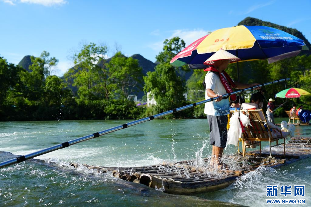 暑期來臨,廣西桂林市陽朔縣旅游人氣旺。游客徜徉在綠水青山間,樂享夏日時光,盡情感受大自然的美好。