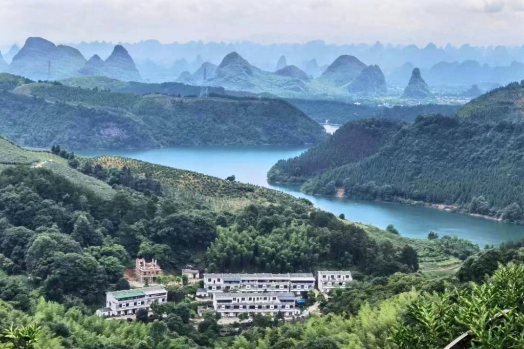 這片掛滿青果的果園,正是馬蹄橋村移民生活“蝶變”的見證。馬蹄橋水庫移民新村位于桂林市臨桂區南邊山鎮,22戶青瓦白墻的桂北民居錯落有致地掩映在山林間。村頭一座古樸的涼亭上,“逢友多聊稱心事,向人莫唱得意歌”的楹聯,為這個小村平添了幾分文化底蘊。