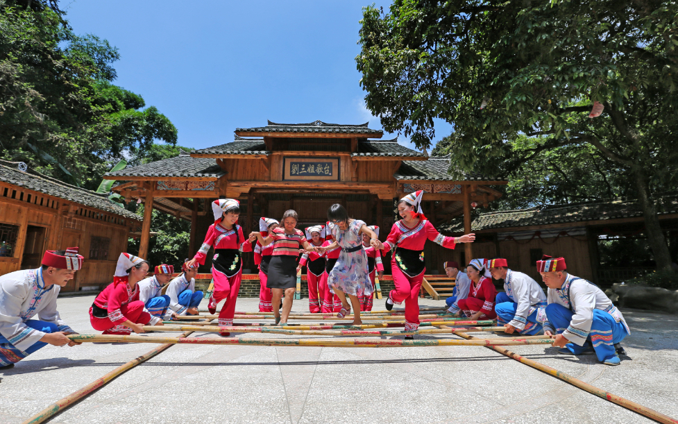 圖為三姐故里景區的文藝展演