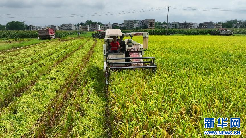 近日,玉林市博白縣早稻陸續進入收割期。在沙河鎮雙江村,聯合收割機正在收割早稻。張健 攝