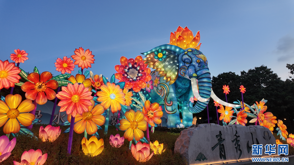 夜幕降臨,南寧青秀山的夜空被美輪美奐的燈光裝置點亮。