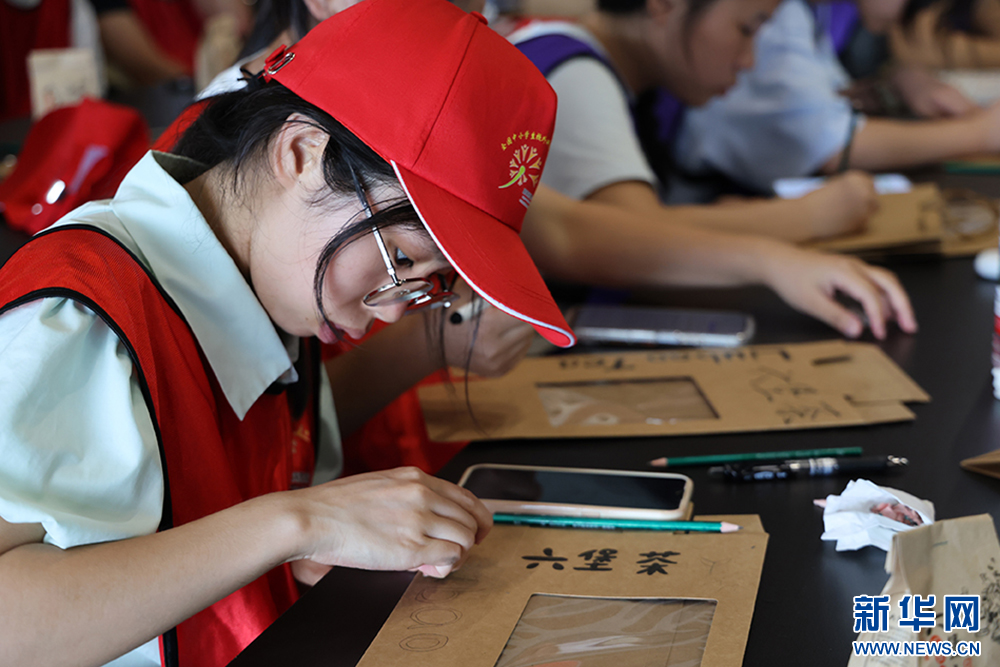 學生在梧州市蒼梧縣制作六堡茶文創。鄒雨成 攝