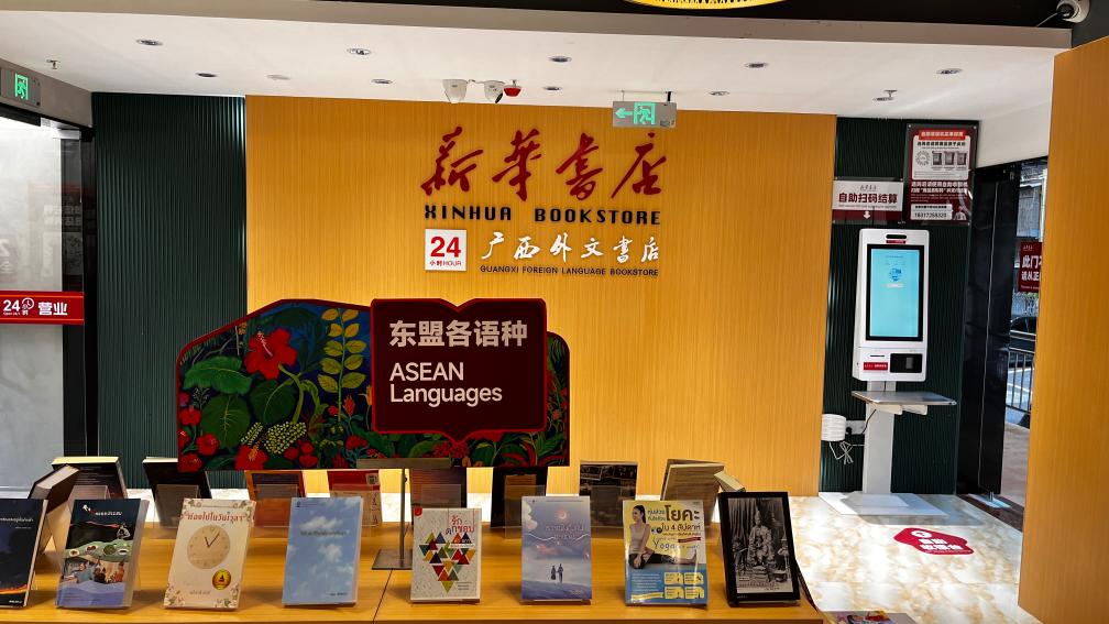 這是廣西外文書店內的東盟語種書架。劉丹萍攝