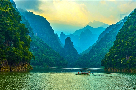 走進百色市樂業縣,只見群山嵯峨,林海蒼翠,云霧繚繞,溪河奔流,涼意襲來,將無邊炎熱屏蔽在外。樂業縣城海拔970米,是廣西海拔最高的縣,這個夏季平均氣溫一直都定格在20~22℃。