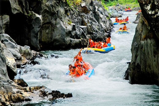 游客在資源縣五排河峽谷漂流。沈桂春/攝