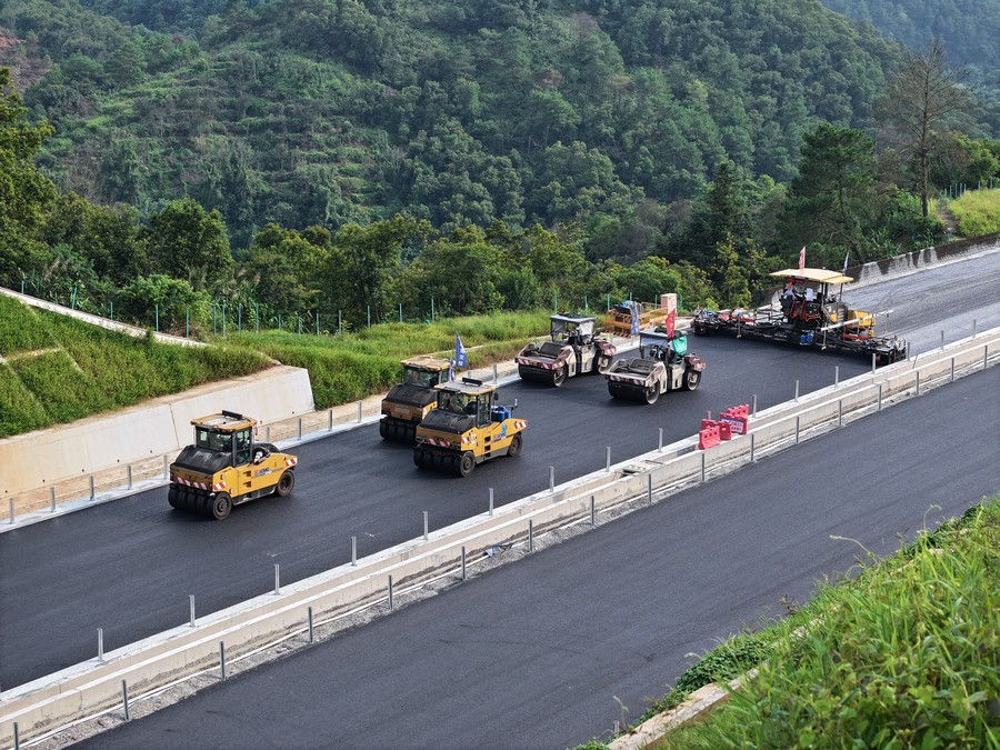 “截至目前,水穩路面已經完成了90%,預計8月底蒼容二標將完成剩余10%的路面攤鋪施工,實現水穩層全面貫通?!?蒼容高速二標項目副經理趙智安介紹。