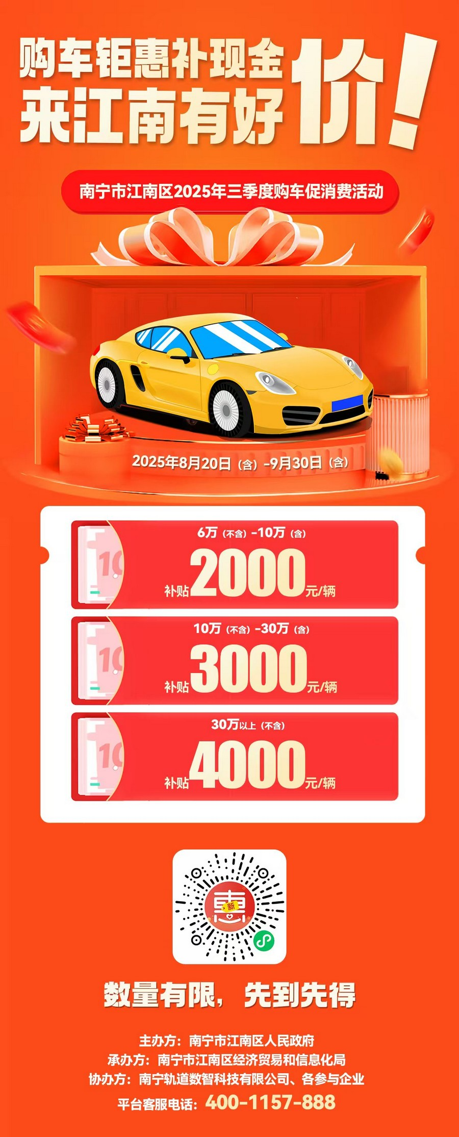 在廣西南寧江南區內注冊登記經營、經風控篩查后的限額以上骨干汽車企業及其他精選汽車銷售企業。
