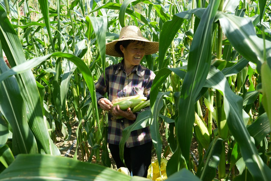 正在摘玉米的工人吳彩獻說:“在這里干活一天能掙 100 塊,每天工作八個小時。自家的稻田插完秧后,我就來這里打工,這樣在農閑時間還能有務工收入,也方便照顧家里?!?/p>