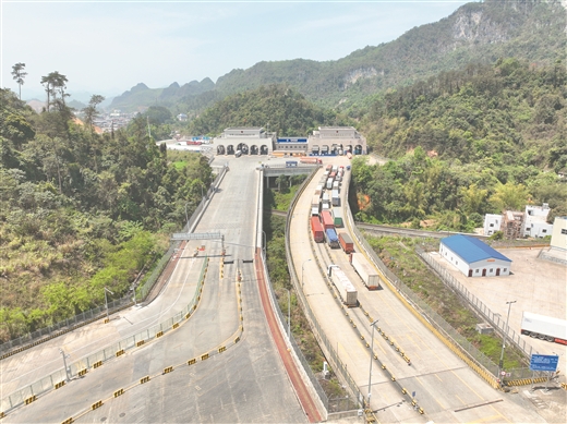 口岸更智慧,服務更優質。在數公里外的友誼關口岸,同樣是車馬駢闐、熱鬧非凡。報關員李飛元輕觸智能查檢系統,一車越南榴蓮2分鐘完成通關?!耙郧鞍胩於嫁k不完手續?!彼袊@道。