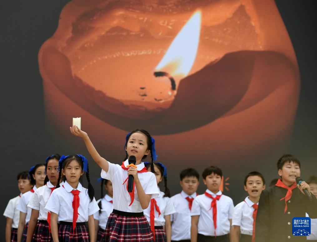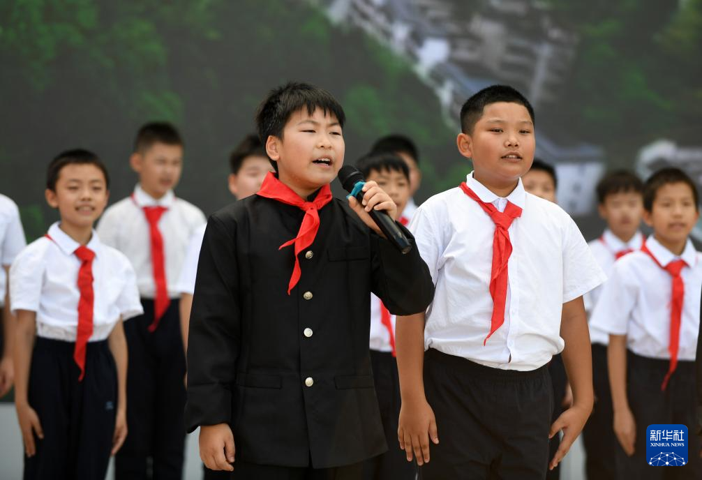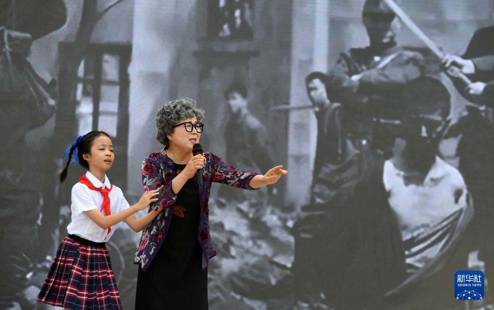 這是廣西南寧市濱湖路小學《薪火照山河 童心向未來——一堂穿越八十年的思政課》實景思政課現場(9月1日攝)。新華社記者 陸波岸 攝