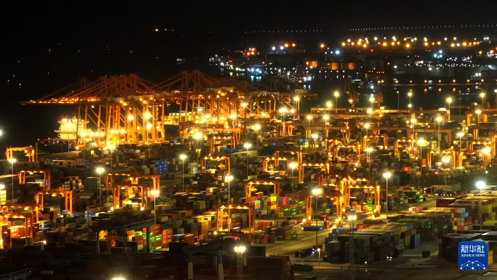 華燈初上時的欽州港(9月4日攝,無人機照片)。