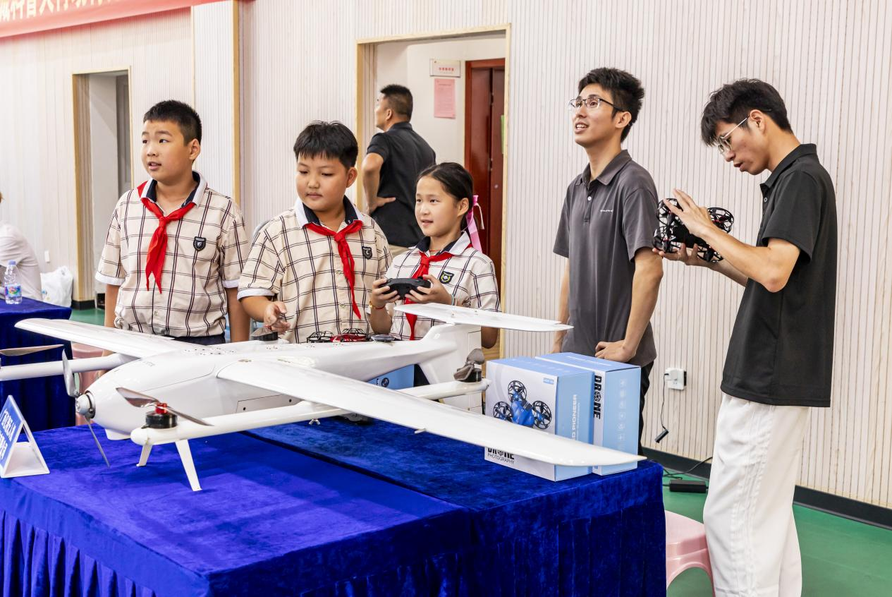 學生們在體驗無人機飛行。陳蕭伊 攝