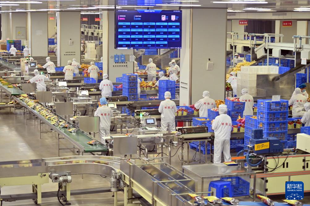 在廣西螺霸王食品科技有限公司生產車間,工人在包裝產品(9月9日攝)。