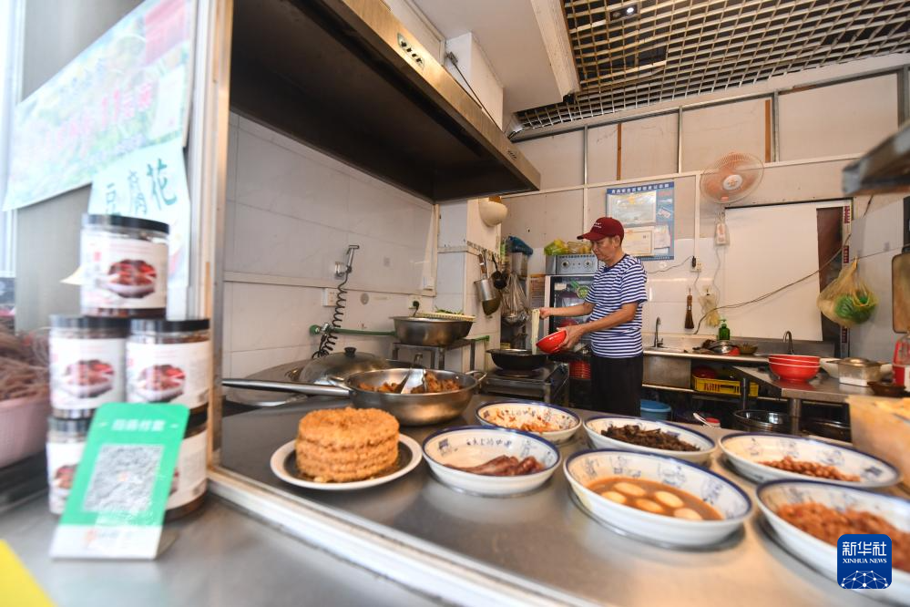 在廣西南寧市一家螺螄粉店,服務員為螺螄粉添加配料(9月18日攝)。