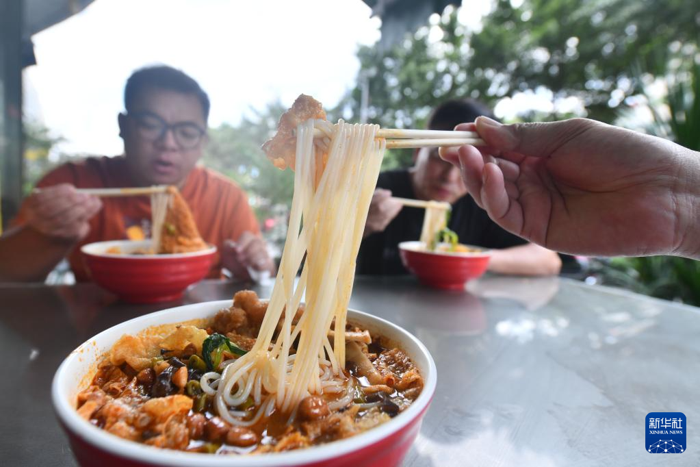 在柳州市一家螺螄粉店,市民在吃螺螄粉(9月14日攝)。