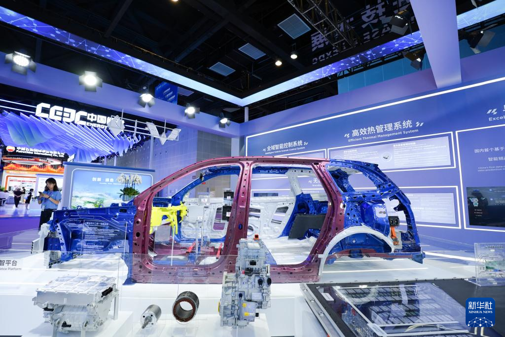 9月19日在南寧國際會展中心拍攝的電動新能源汽車展臺。