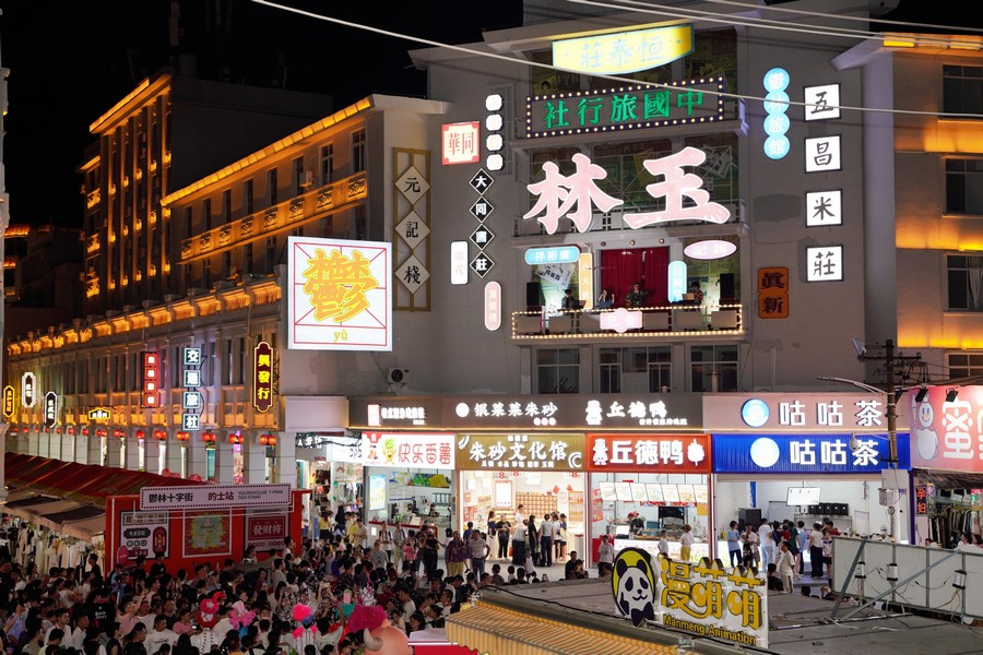 9月19日晚,玉林十字街燈火璀璨,第三屆玉林十字街城事文化藝術季啟幕。藝術季以“歲歲煙火?生生常青”為主題,包含藝術展覽、街頭演藝、商業聯動等系列活動,活動將持續到11月。