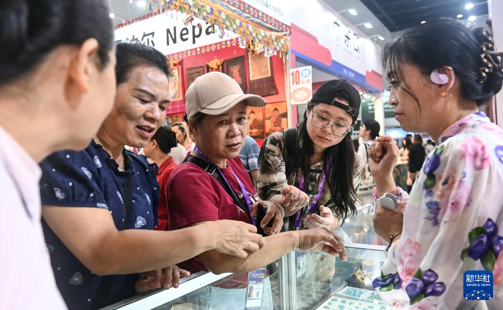 9月20日,觀眾在“一帶一路展區”選購飾品。