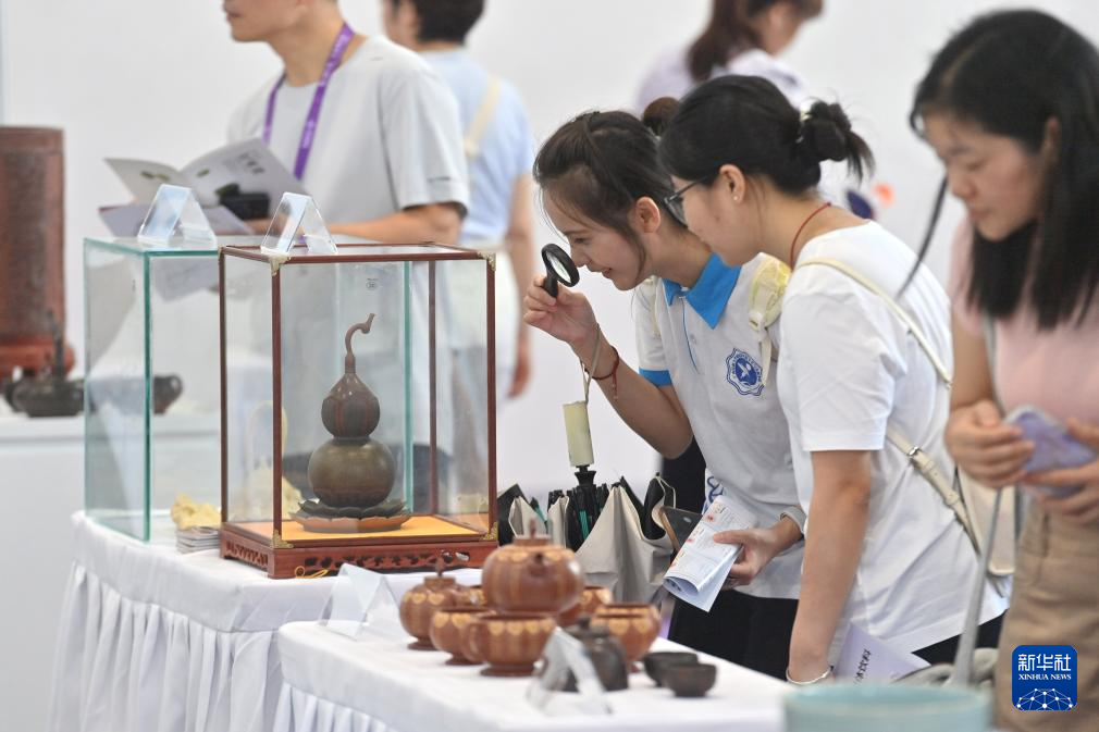 9月20日,在廣西南寧國際會展中心,人們參觀坭興陶作品。